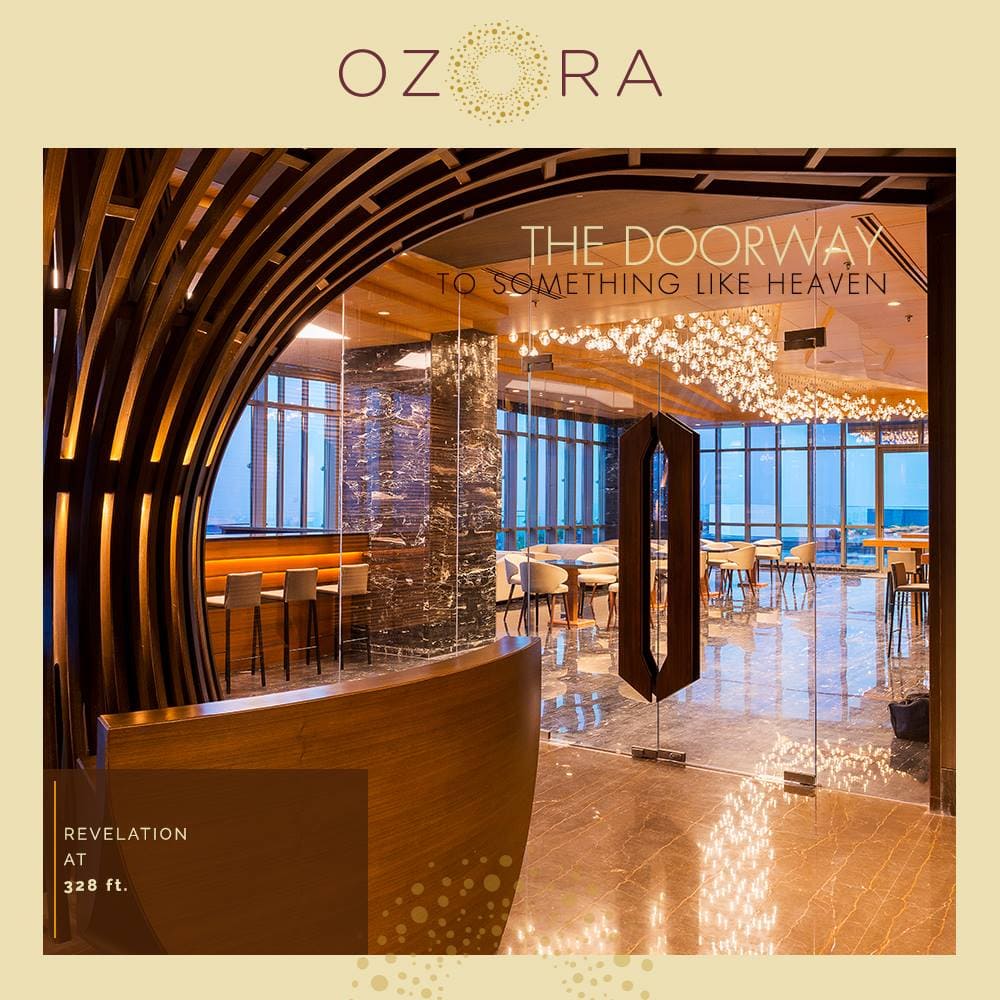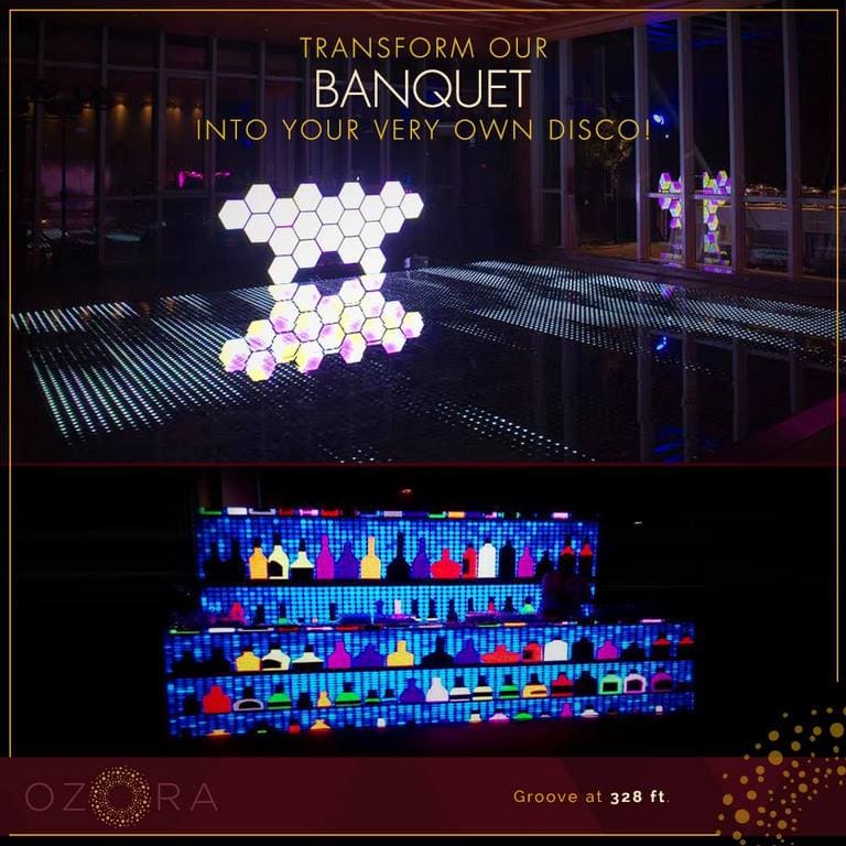 Ozora offers two banquets, private dining rooms, a skydeck and an infinity pool area with an attached glass room that can be booked for once‑in‑a‑lifetime rooftop parties and celebrations.