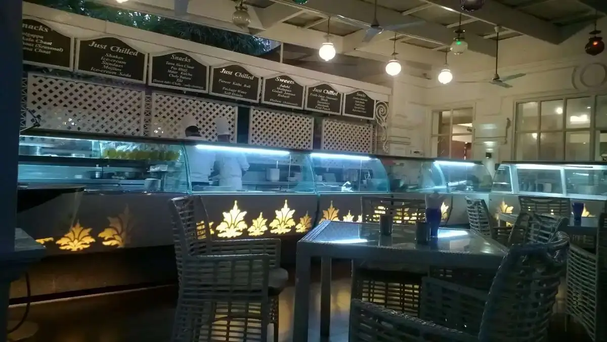EazyDiner and Magicpin indicate a cost of around ₹700–₹1,000 for two, and menu snapshots show most savoury dishes between ₹150 and ₹300 with premium sweets slightly higher. As a result, diners generally spend ₹200–₹600 per person depending on whether they order only snacks or add multiple sweets and beverages.