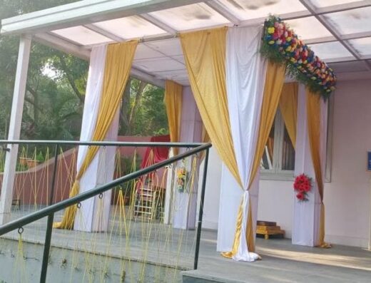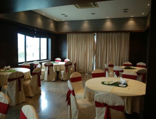 The Central Court offers an indoor banquet hall and an outdoor terrace, both usable for weddings, receptions, pre‑wedding events, parties and corporate functions.