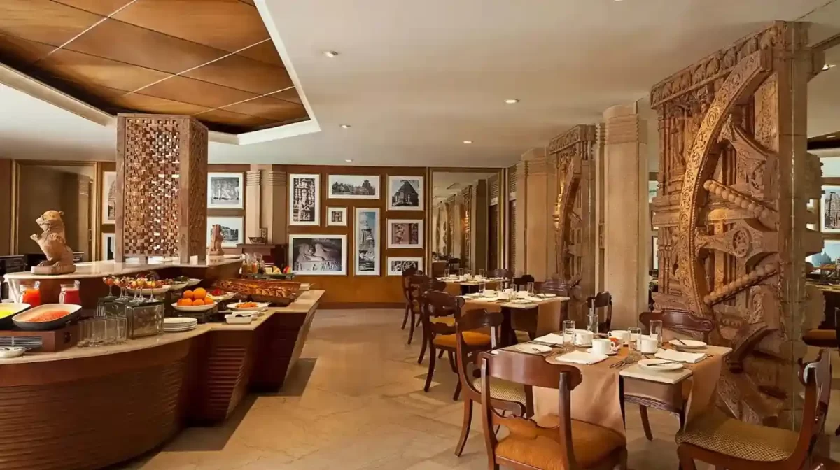 The Restaurant at Trident Bhubaneswar is the hotel’s signature all‑day dining venue, set on the first floor overlooking the property’s landscaped gardens in CB‑1 Nayapalli. Inspired by the art and temple architecture of Odisha, the interiors feature rich earthy tones, graceful arches and classic décor that create a calm, old‑world atmosphere away from the bustle of Jaydev Vihar. Soft background music, spacious seating and attentive table service make it equally suitable for business meetings, relaxed family meals and special‑occasion dinners.