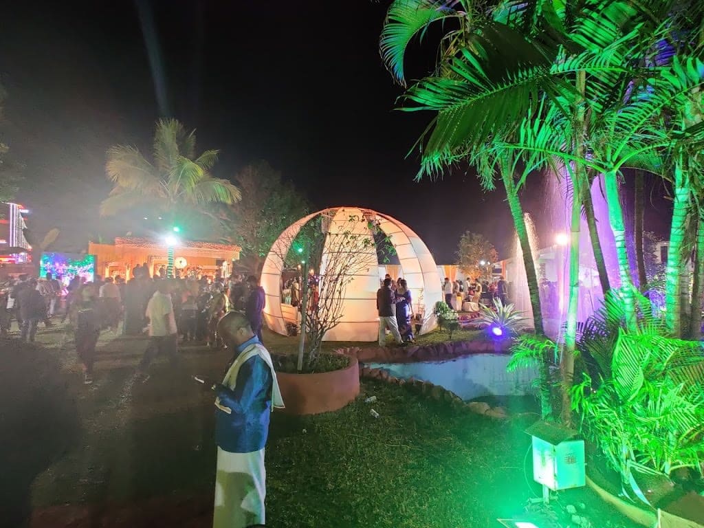 a`q\ya Mukhi Resort, Chandrasekharpur, Bhubaneswar, is a beautiful venue for wedding celebrations. Located near Infocity Square and Venkateswar English Medium School, this venue is easier for invitees to commute. This venue can ideally be considered as your one-stop destination for all your wedding ceremonies, rituals, special occasions, social events, and cultural gatherings. The lawn here can easily accommodate large gatherings for your function.